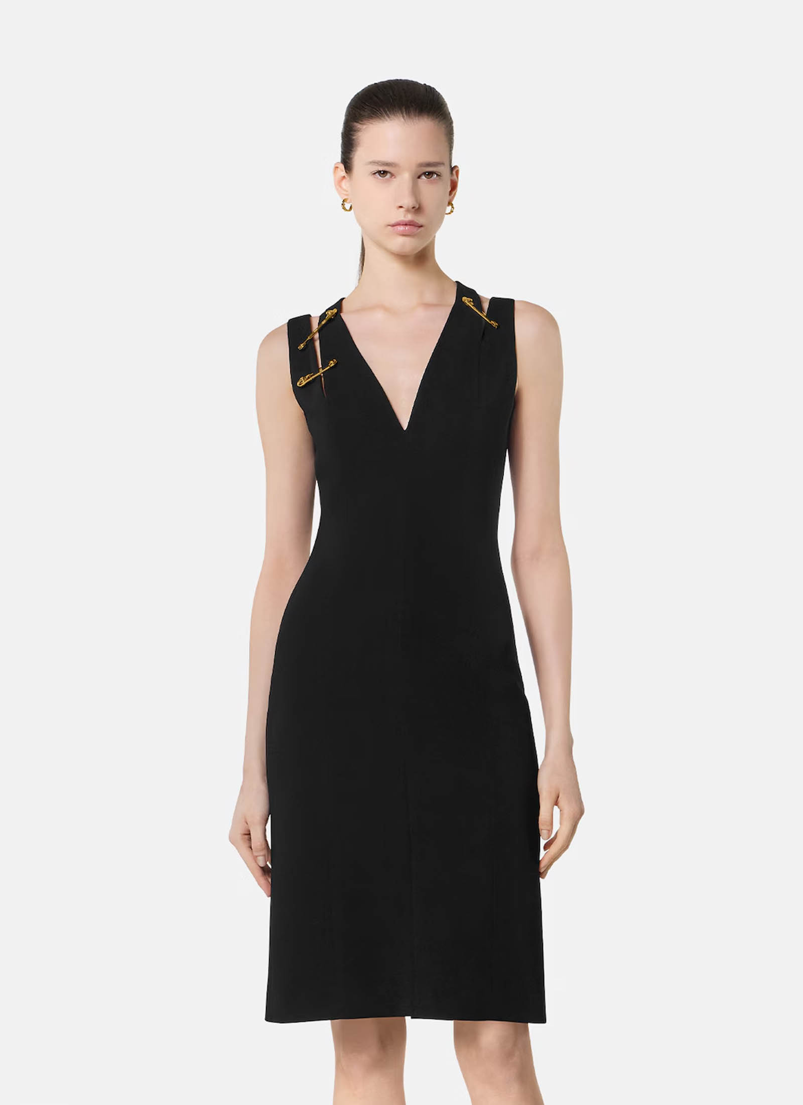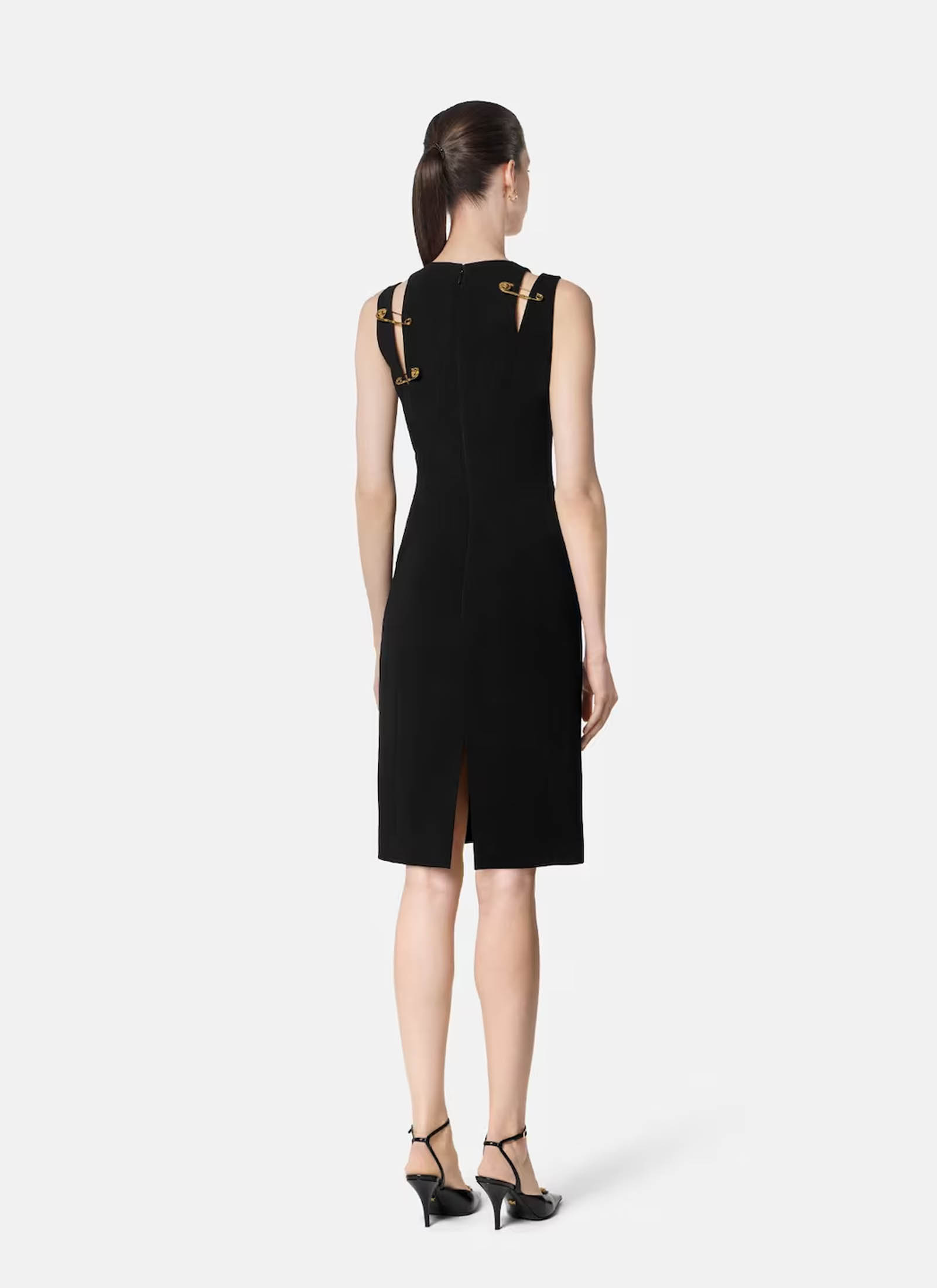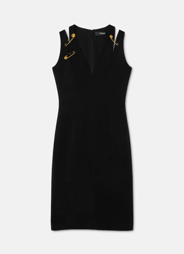 A knit bustier dress, decorated with Medusa ’95 pin fittings on the straps,