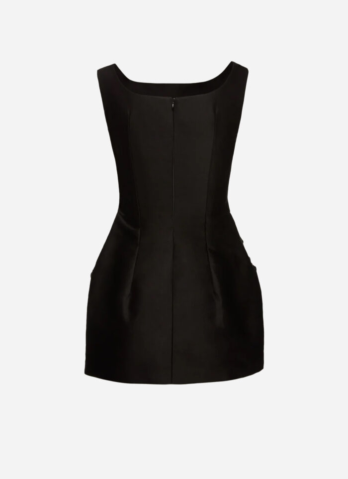 A fitted mini sheath dress with a defined shape and a slightly flared skirt.