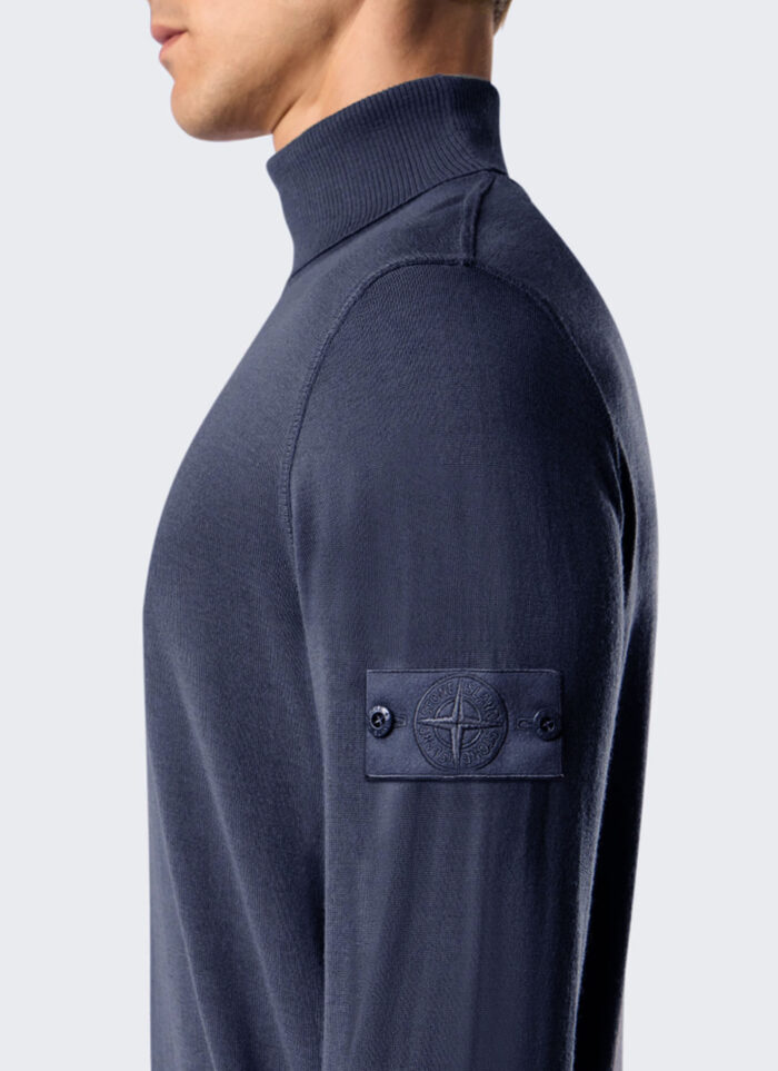 A Ghost crewneck knit sweatshirt crafted from lightweight, pure RWS wool. The Stone Island emblem is featured in a special monochrome version.