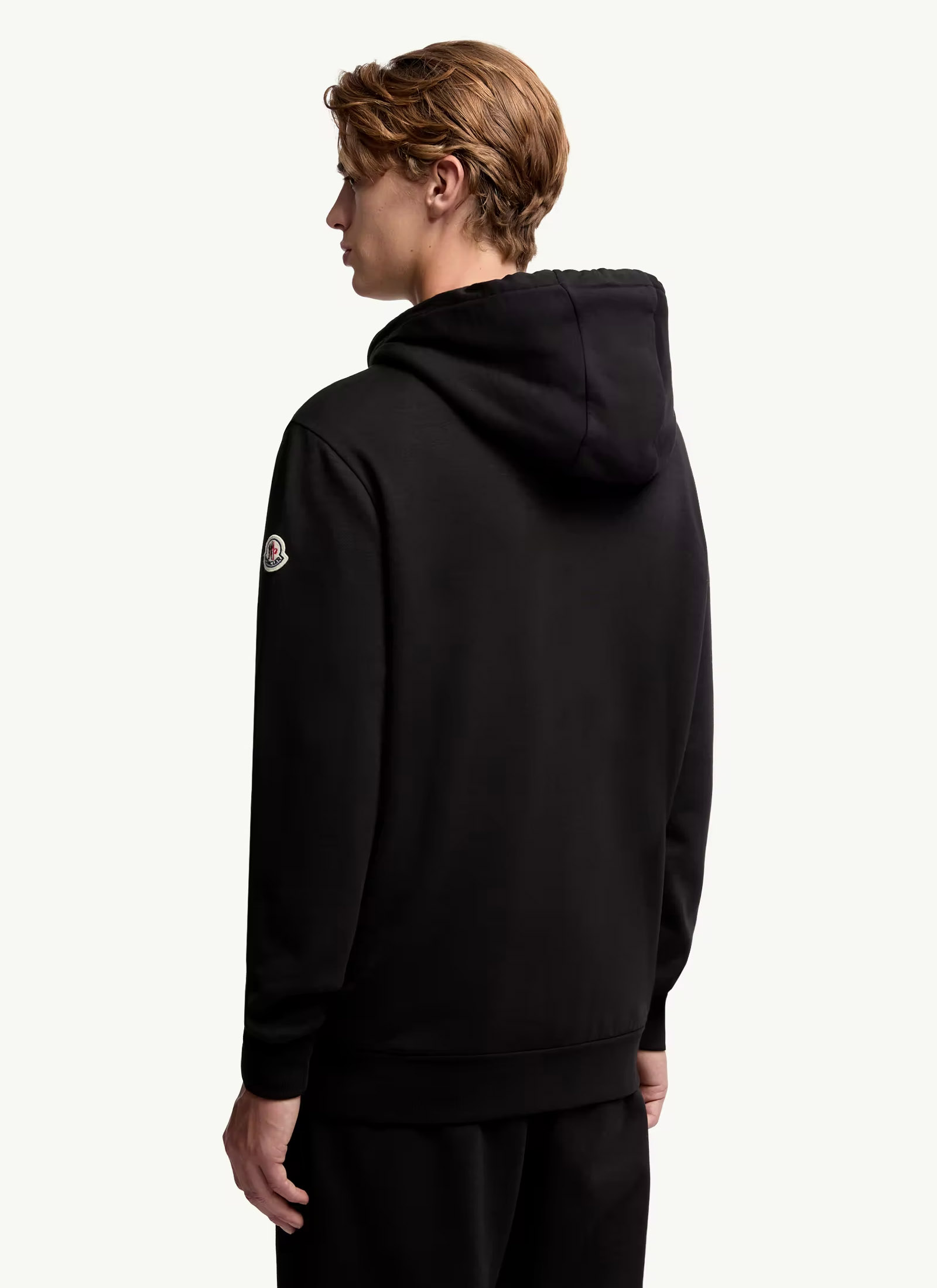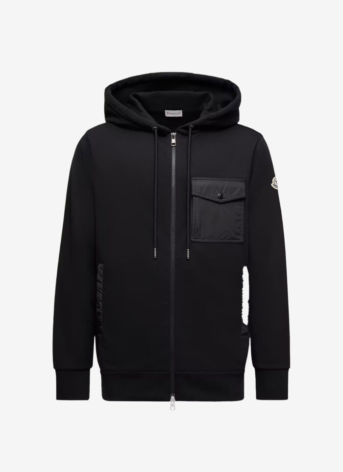 Solid-color hooded jacket made of cotton. Zip closure. Chest pocket.