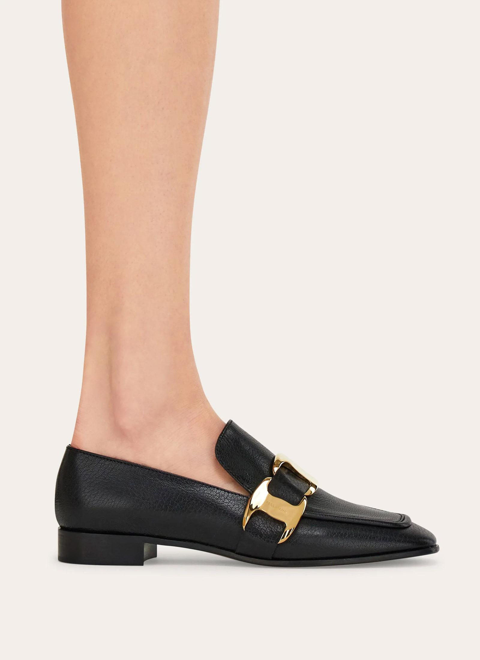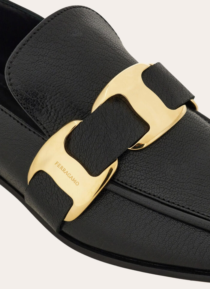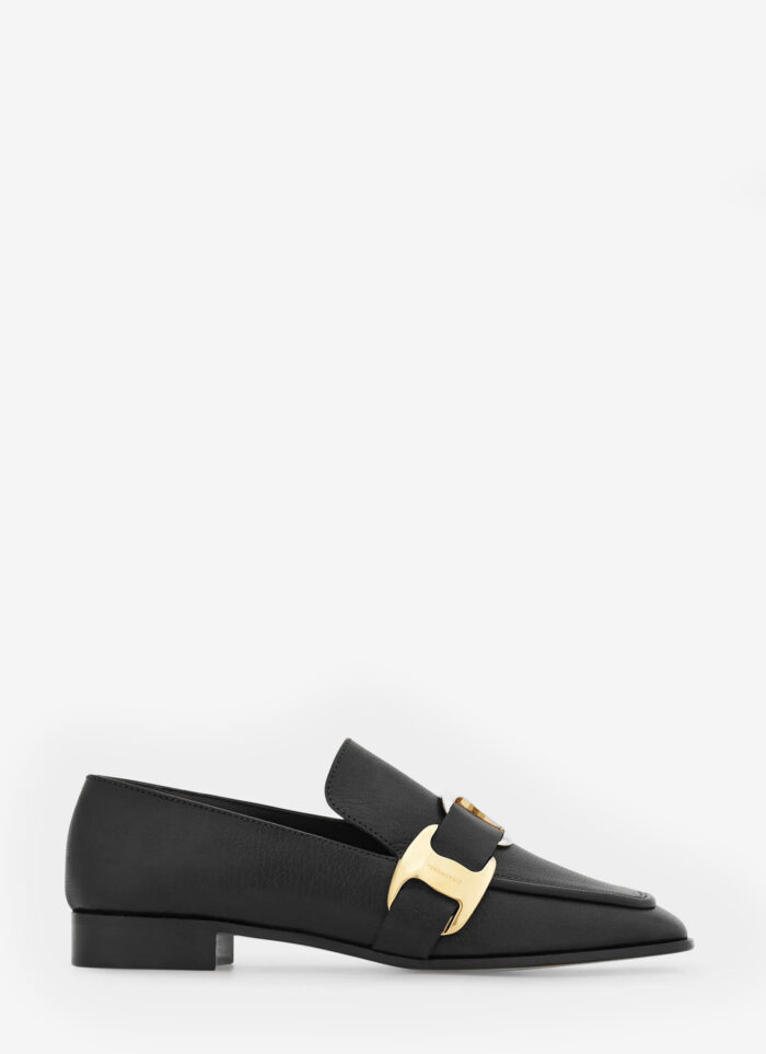 – Details: adorned with a signature buckle in a noble gold color