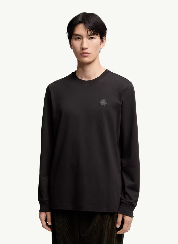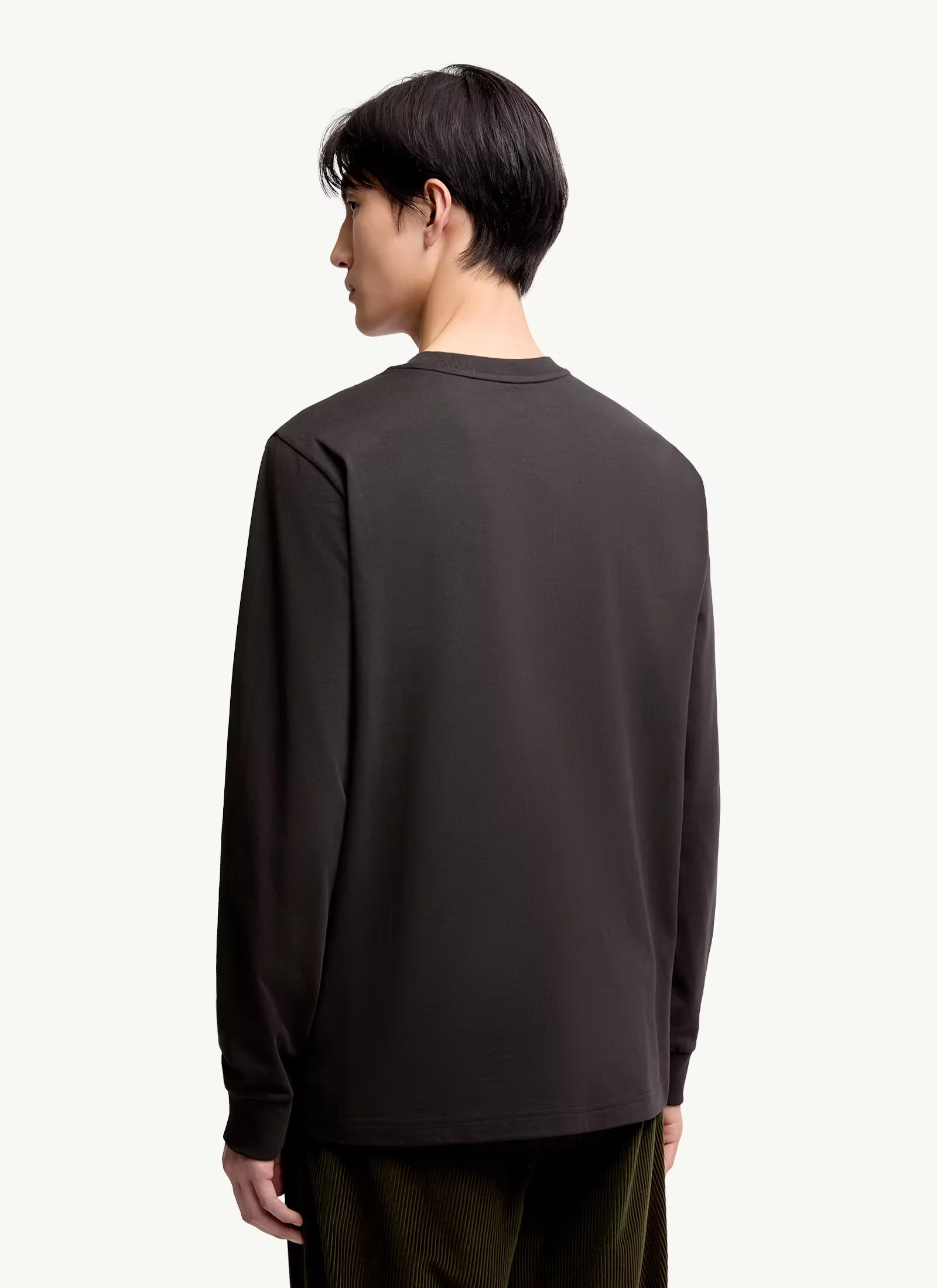 Cotton long sleeve T-shirt with a round neckline. Leather logo on the chest.