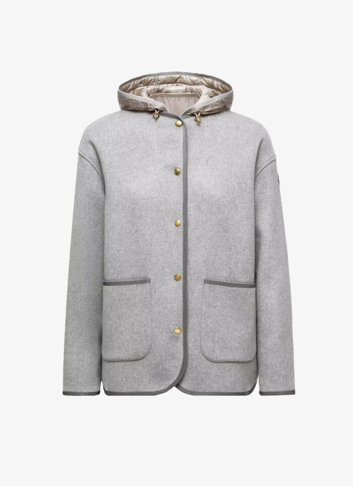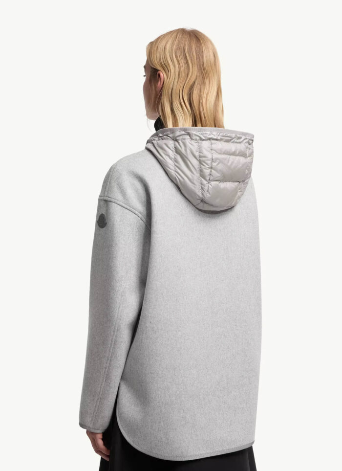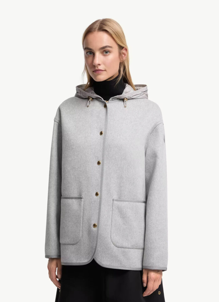 Однотонна куртка виготовлена ​​з вовни та кашеміру, доповнена повністю знімним пуховим жилетом з водовідштовхувального нейлону. Обидва предмети ідеально підходять для будь-якого сезону та можуть носити як разом, так і окремо, залежно від температури.