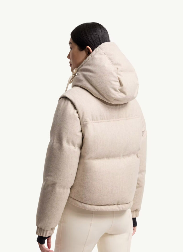 Однотонна куртка-пуховик траснформер, виготовлена з 2-шарової вовняної технічної фланелі з підкладкою з мікро-ріпстопа, регульовані манжети з джерсі. Знімний та регульований капюшон. Знімні рукави. Водовідштовхувальна блискавка YKK® AquaGuard® NATULON® та застібка на кнопках. Внутрішня кишеня для медіа-пристроїв із водовідштовхувальною блискавкою YKK® AquaGuard® NATULON®.