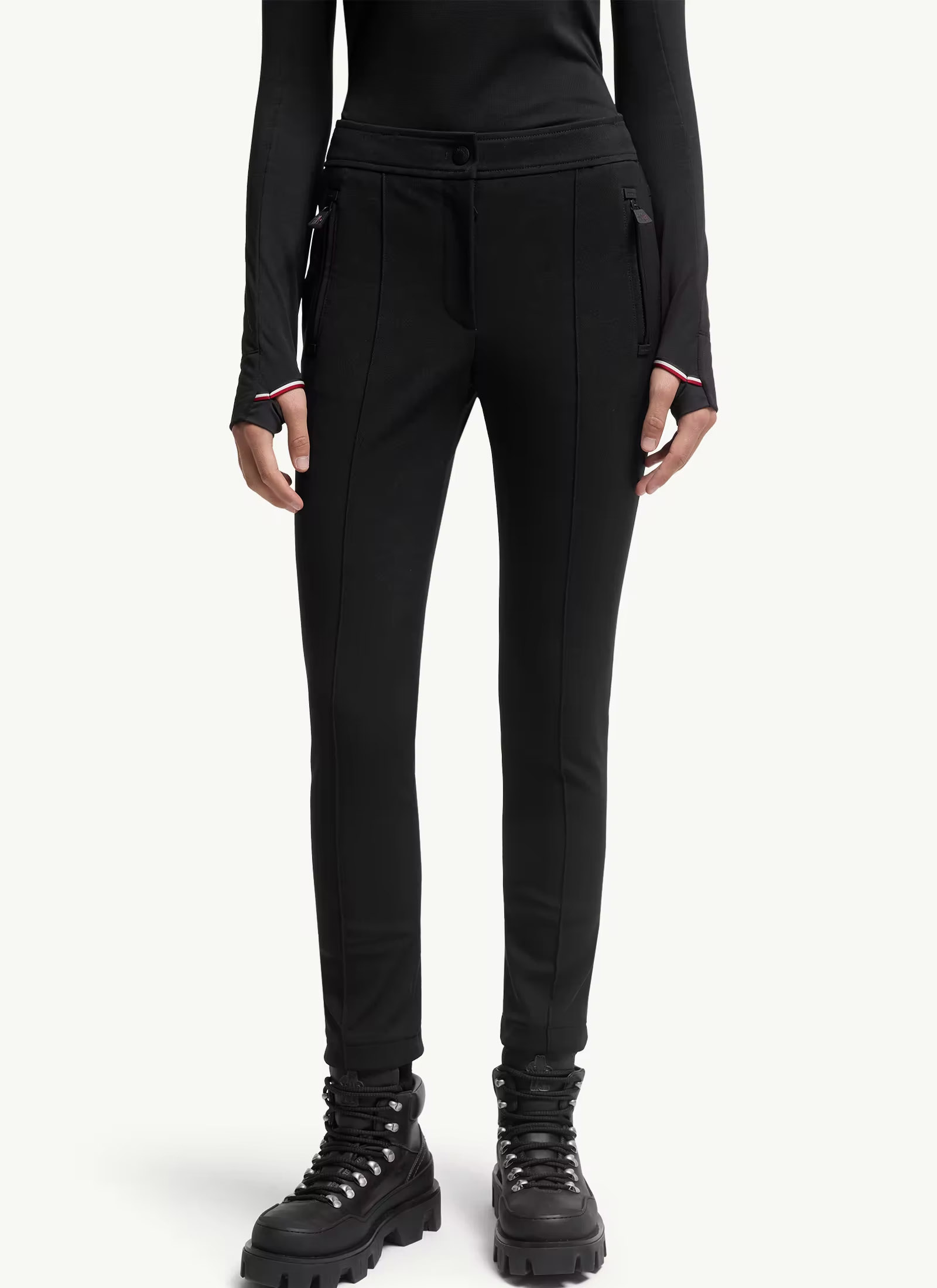 Однотонні джерсі-легінси з технічної нейлонової тканини з еластичним поясом. Кишеня для медіа-пристроїв на блискавці.