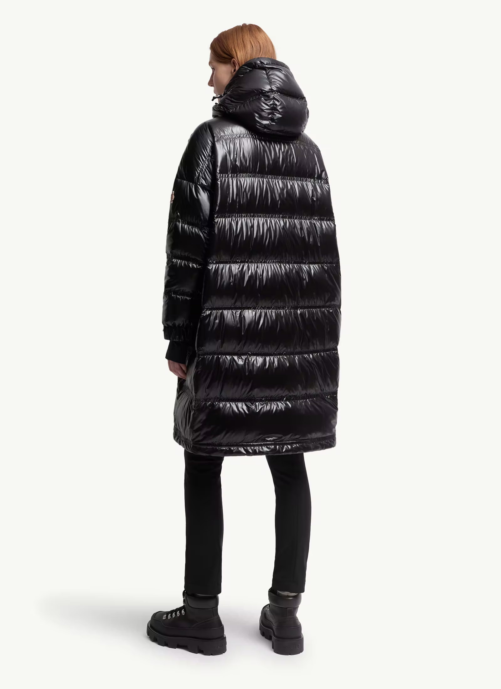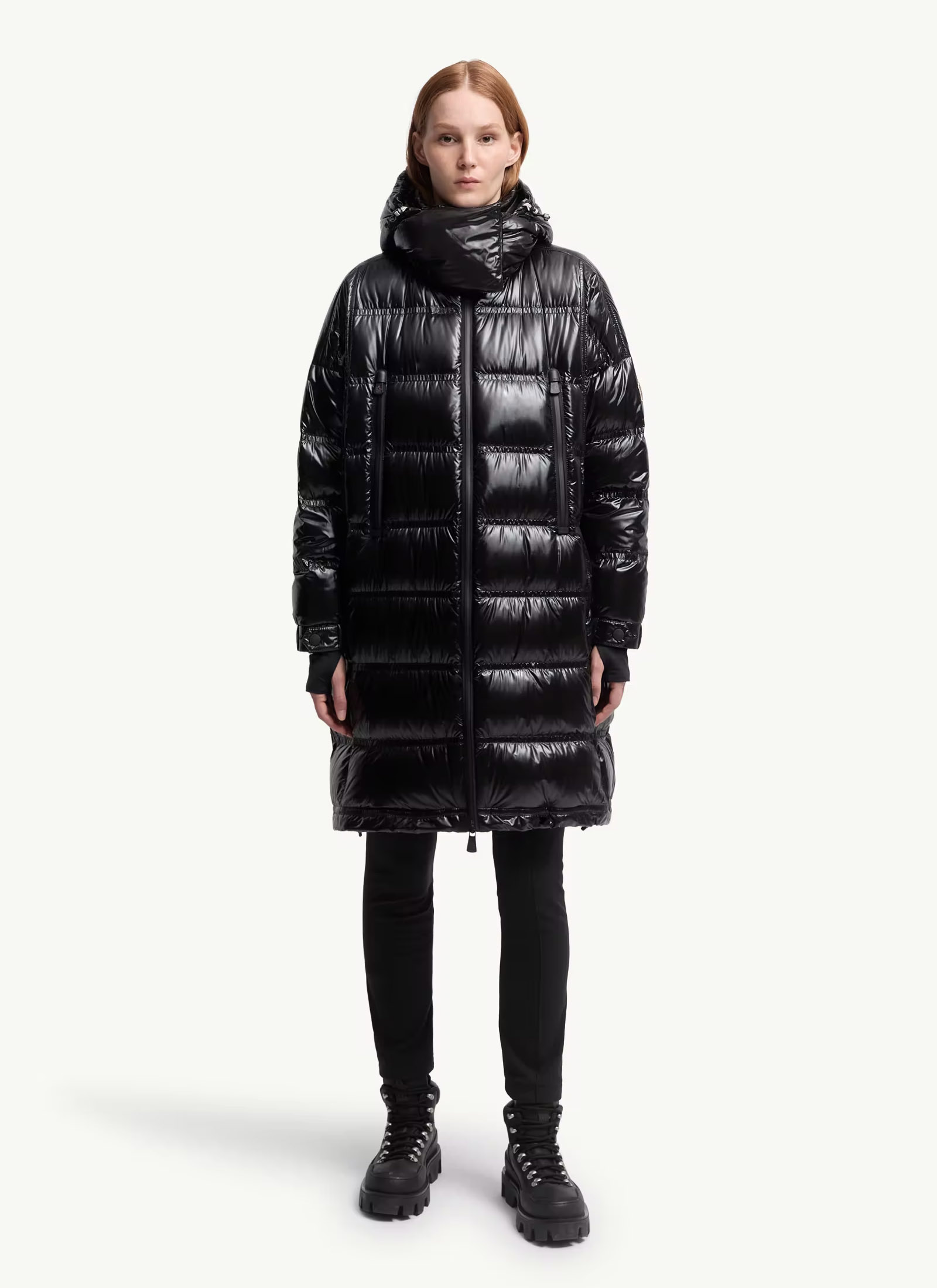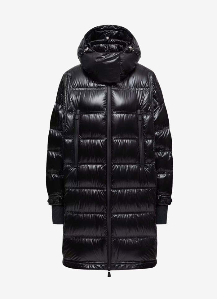 Довга однотонна пухова куртка, виготовлена ​​із надлегкого лакованого нейлону. Знаменита тканина Moncler захищає від негоди, не створюючи відчуття тяжкості. Знімний капюшон та практична кишеня для медіа-пристроїв доповнюють стиль.